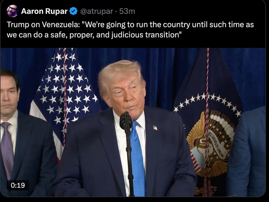 Last night’s unauthorized strikes, raid, and now promised occupation, of Venezuela did not happen in a vacuum. On December 1st, Donald Trump pardoned a former Honduran president convicted of conspiring to traffic cocaine into the United States. On Christmas, U.S. forces carried out military strikes in Nigeria. Now, last night, American service members were sent into Venezuela to seize Nicolás Maduro on similar charges. Today, the president openly hinted that Mexico could be next. Different countries. Different excuses. Same pattern. A president acting without restraint because Congress refuses to draw a line.
